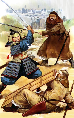 Boj mongolských vojáků s japonskými samuraji (Zdroj: Pinterest)